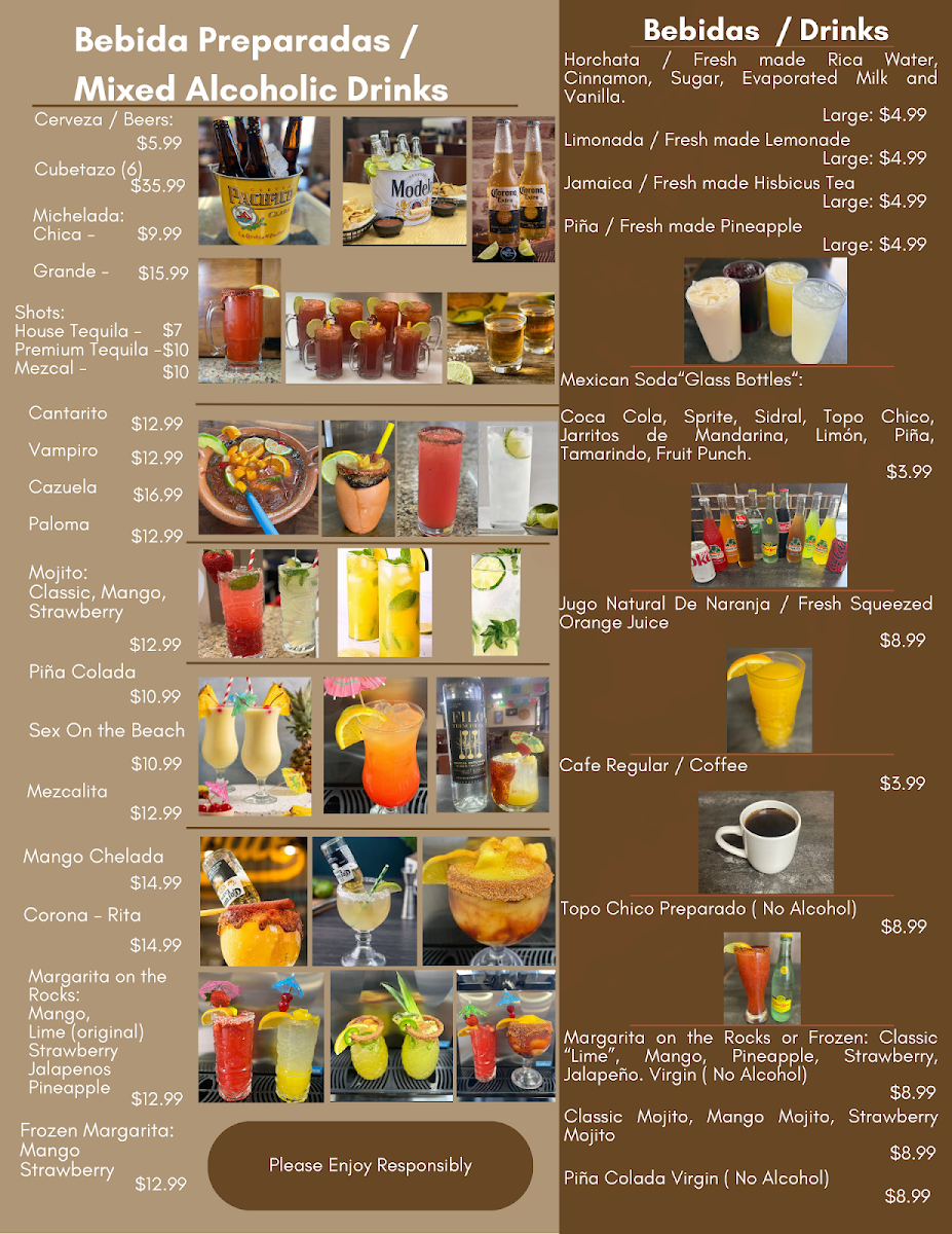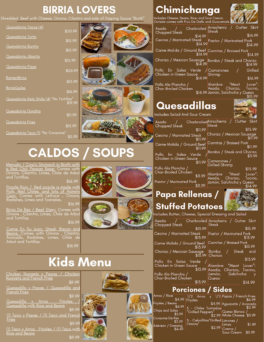 The menu also suits a variety of moments—from grabbing a flavorful taco with rice and beans on the go to savoring a bowl of Birria or Menudo on cooler days. Refreshments like the Pineapple and Jalapeño Margarita or Grande Agua De Sabor provide a cool, vibrant contrast to the rich and savory dishes.